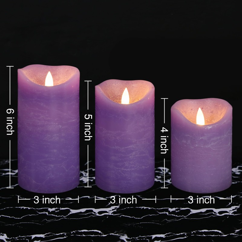 - Package: The beautiful package includes 3 LED pillar candles (3 inch diameter, 4 5 6 inch height), 1 remote control, all these candles have been strictly tested . What's more, you will have an unforgettable memory. Note: Package doesn't include batteries, please note before purchase. If you encounter any problem please contact us, we will reply within 24 hours
