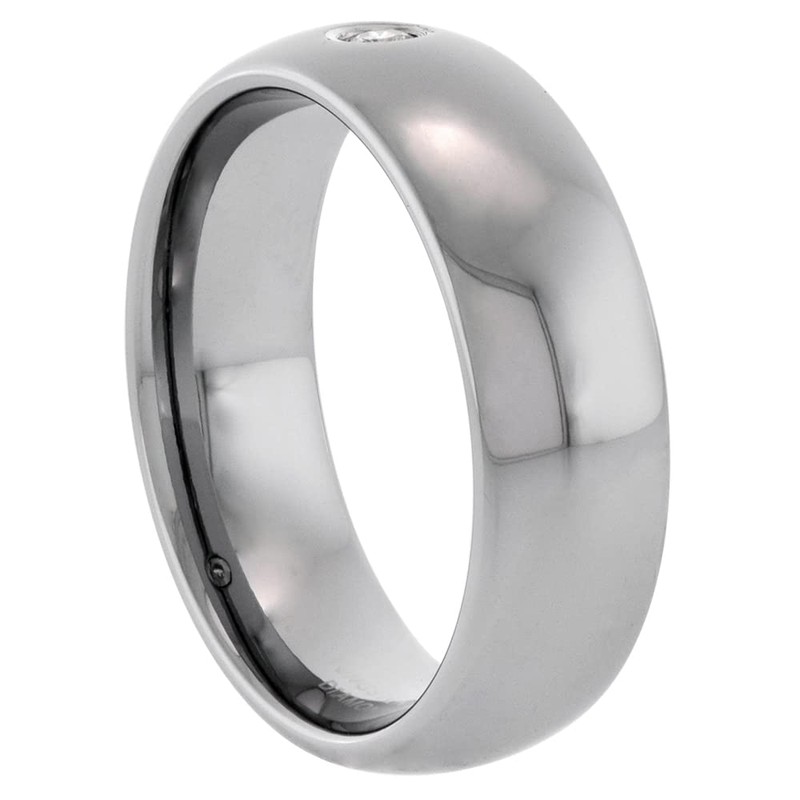 - Beautiful High Polished Finish 7mm Wide Domed Shape Diamond Tungsten Ring