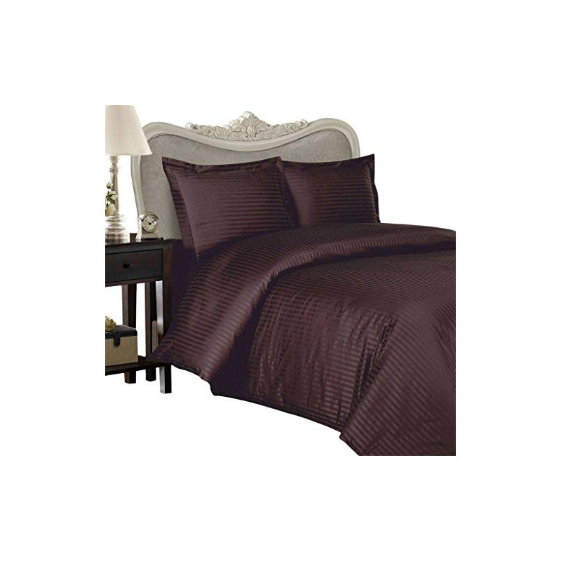 7PC ITALIAN 1000 Thread Count Egyptian Cotton Set - includes Sheet Set & Duvet Set, Full, Chocolate Stripe, Premium ITALIAN Finish