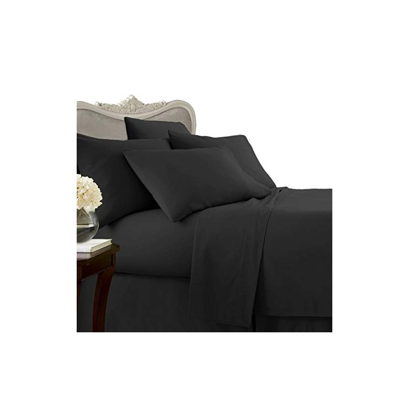 7PC ITALIAN 1500 Thread Count Egyptian Cotton Set - includes Sheet Set & Duvet Set, Full, Black Solid, Premium ITALIAN Finish