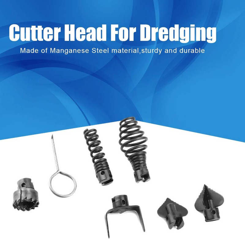 7Pcs 16mm Manganese Steel Drain Cleaner, Sturdy Drain Cleaner Combination Cutter Head Set, Pipeline Dredging Machine Cutting Head, Spring Automatic Locking Head for Pipeline Dredging Machine