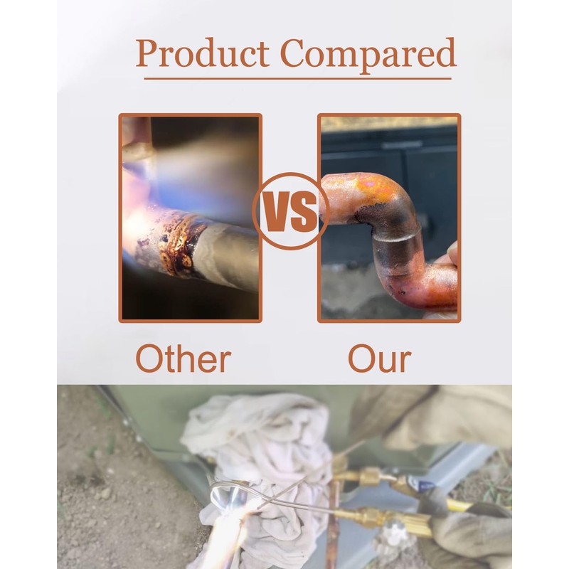 - 【MATERIAL】 1/8" X 13.78" brazing rods for copper HVAC are included in the package. The chemical composition of the brazing rods: Phosphor (P): 7%, Copper (Cu): remainder, Content of other elements: ≤0.15%. Note: Welding needs to be done in an open place or outdoors.