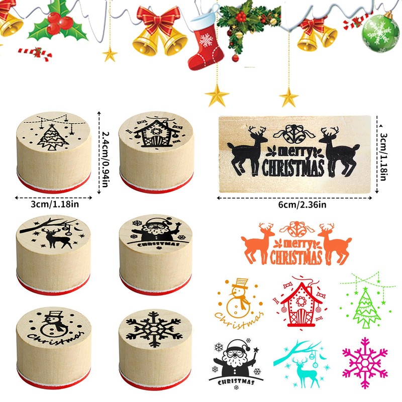 7pcs Christmas Stamp Set, 7 Patterns Christmas Crafts Perfect for Card Making and Crafting Stamps for Kids Merry Christmas Stamps for Crafting