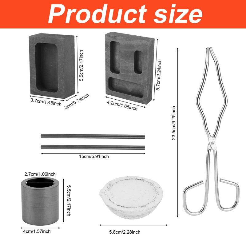 - Tips: This kit is more suitable for small-capacity metal smelting. It needs to be stored in a dry place. Do not contact water after drying. When using it for the first time, pay attention to slow heating to increase its service life.