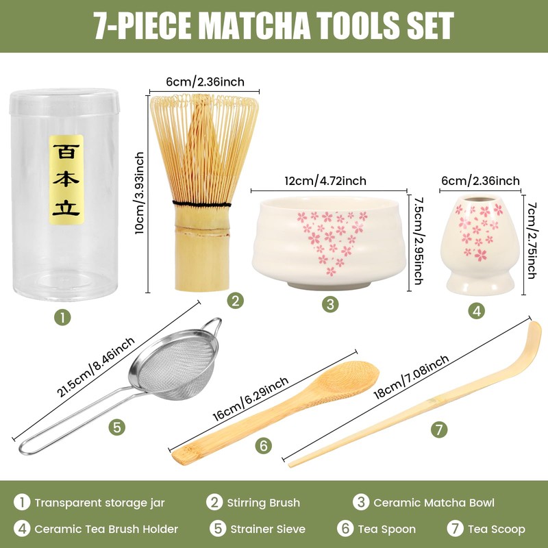 - PACKAGE CONTENTS : You will love this gorgeous matcha whisk set. This matcha set is a great way to impress any matcha lover. You deserve a matcha set that makes you feel special every day. This matcha set whisk and bowl comes with 1 matcha whisk, 1 matcha whisk storage holder, 1 tea spoon, 1 digging scoop, 1 tea strainer, 1 ceramic bowl and 1 ceramic whisk holder. The full set of tools is enough to satisfy matcha lovers, so you can experience the tea culture at home or outdoors anytime