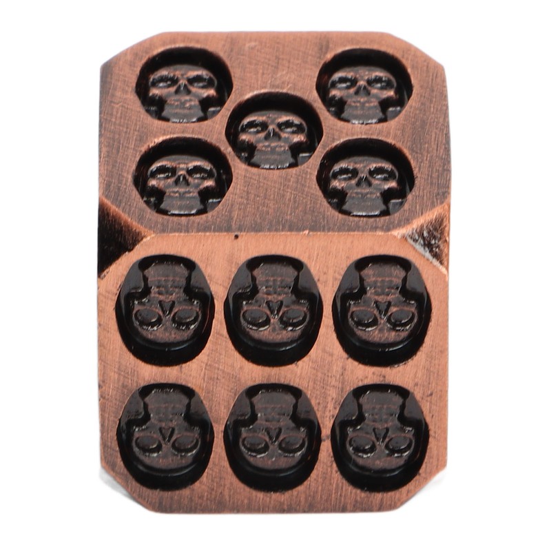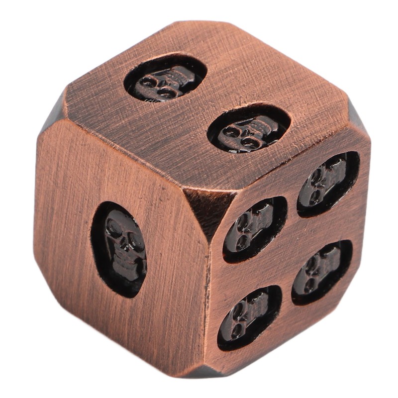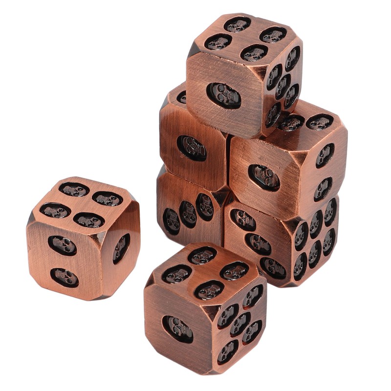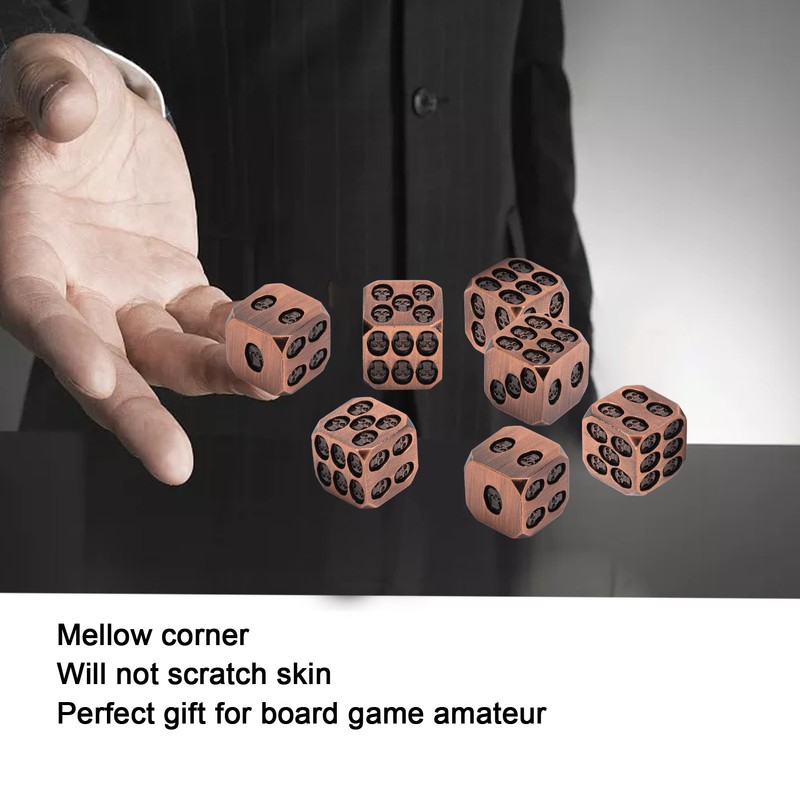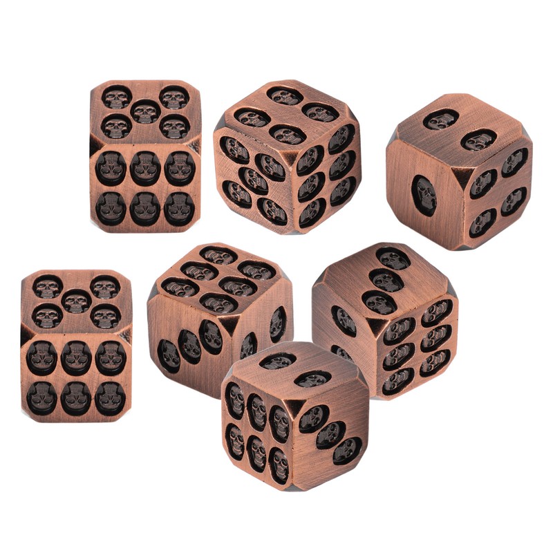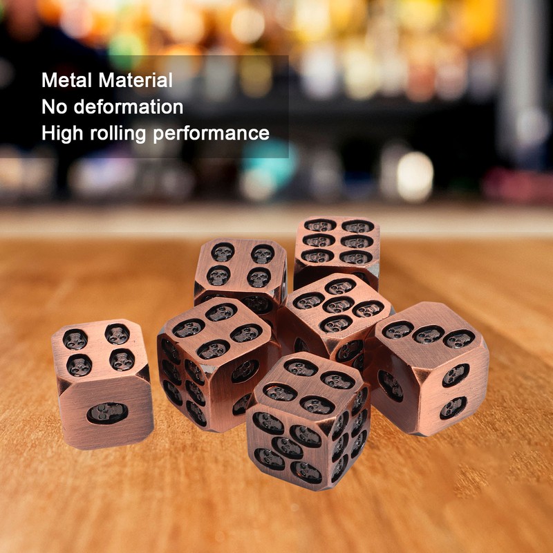 7pcs Metal Dice Set Exquisite Square Inlaid Skull Pattern Dice Board Game Props for Holiday Party Antique Red Bronze