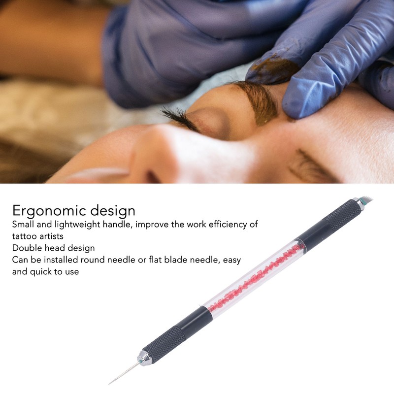 1、ERGONOMIC: With ergonomic design, small handle, light weight, improve the work efficiency of tattoo artists, allow you have a comfortable grip. 2、DOUBLE HEAD: Double head cross pen design, can be installed round needle or flat blade needle use, easy and quick to use, multi purpose, very practical. 3、HANDLE DESIGN: The pen handle is equipped with anti slip lines, making it easier and more comfortable to hold, not easy to slip off, and safer to use. 4、WIDE APPLICATION: Eyebrows, eyeliner, lips and small tattoos can be easily completed with this microblading pen, enough quantity to satisfy your daily use and changing needs. 5、SUITABLE FOR: Suitable for designers, learners and beauticians who work or have interests in eyebrows, also for tattoo beginners practice or tattoo artists.