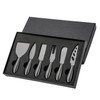 7stars Cheese Knife Set – 6-Piece Stainless Steel Charcuterie Knives with Gift Box – Perfect for Cheese Boards, Cutting & Serving (Black)