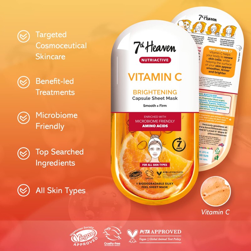 - Give your skin a wake up call with our energising Vitamin C sheet mask. The perfect choice to help reveal a dewy and bright complexion with a healthy glow.