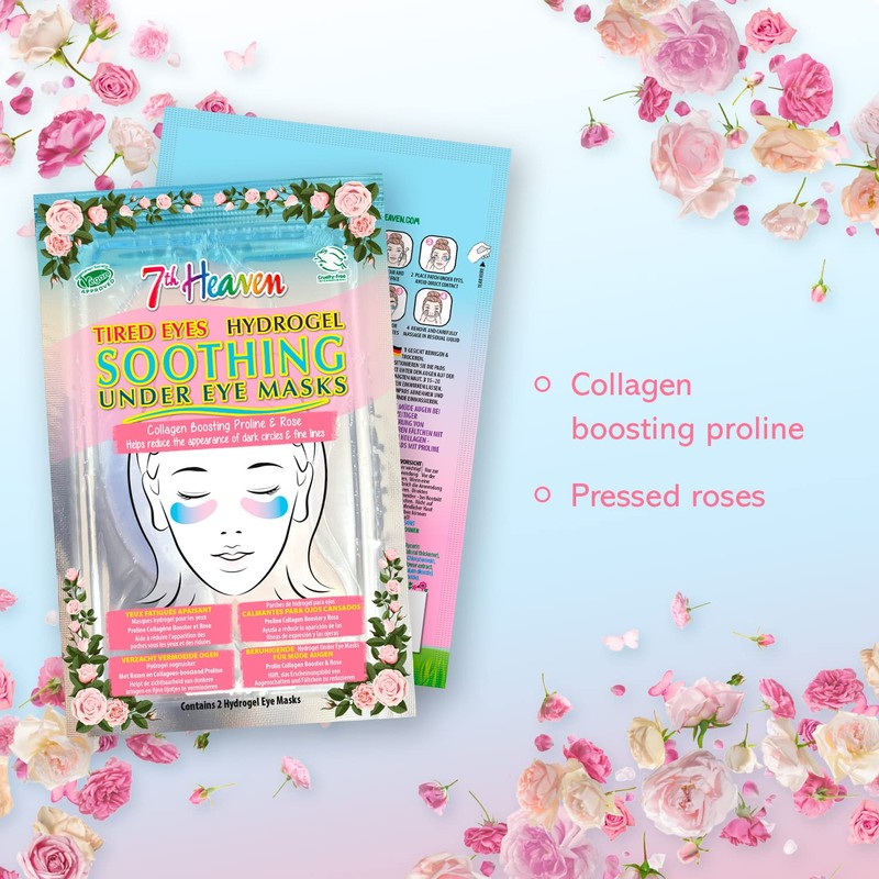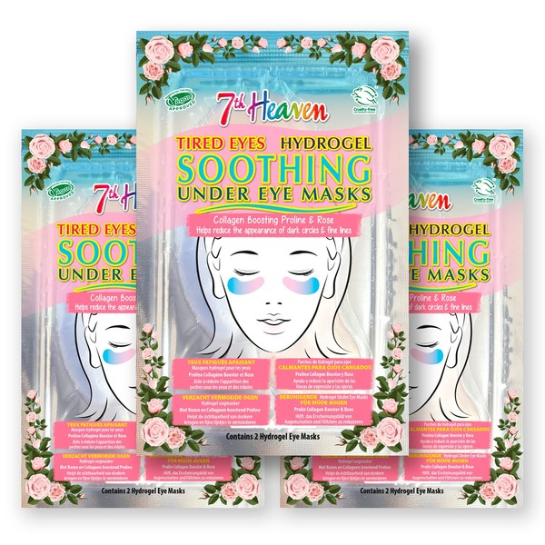7th Heaven Soothing Under Eye Hydrogel Patches Multipack - 3 Pairs - Rose and Collagen Boosting Proline to Reduce the Appearance of Dark Circles and Fine Lines