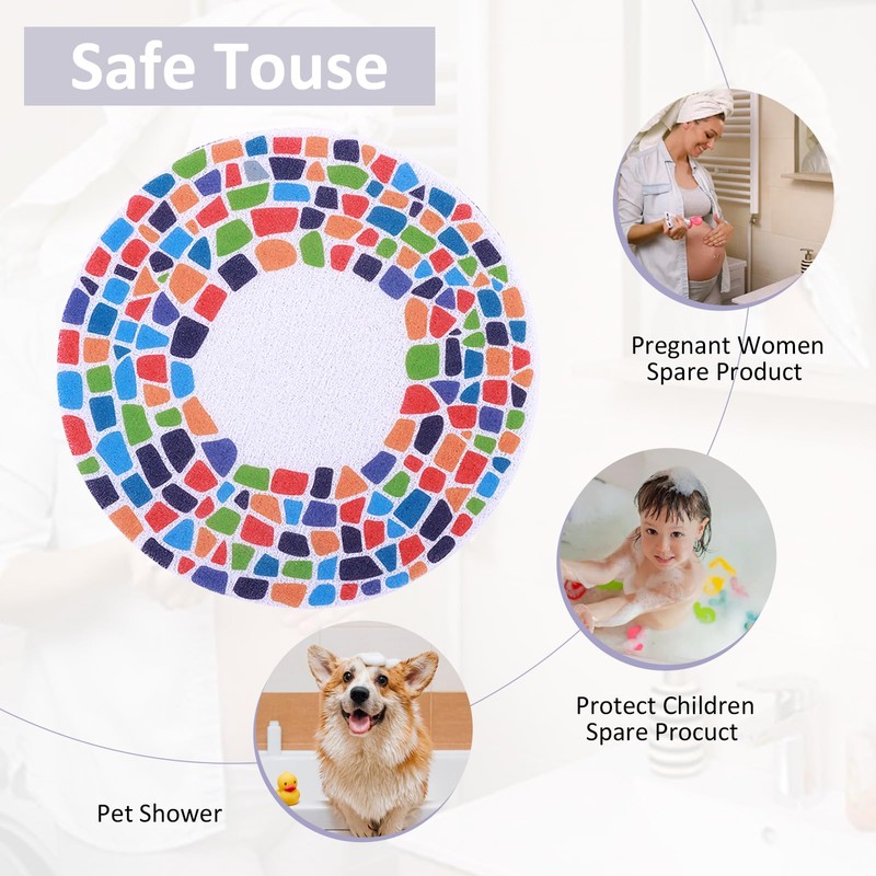 7VSTOHS Shower Mat, Non-Slip Round, Soft Comfort Bath Mats with Drainage Holes, PVC Loofah Shower Mats for Wet Areas, Quick Drying