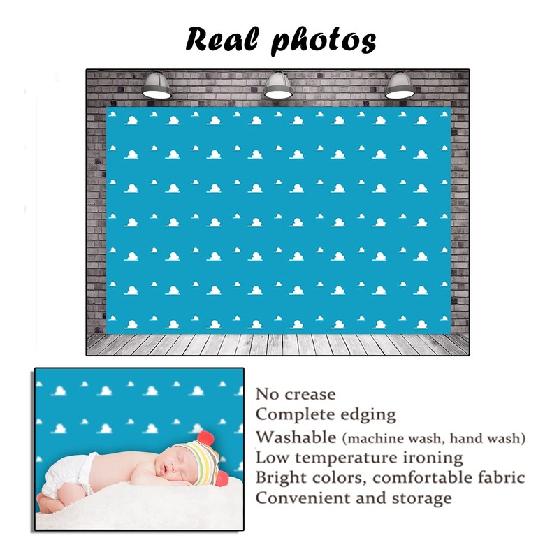 7x5ft Blue Sky White Clouds Photography Backdrop Toy Children Birthday Backdrop for Party Fabric Table Banner Background