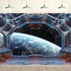 7x5ft Spaceship Interior Backdrop Science Fiction Spacecraft Cabin Window View Giant Planet Photography Background Wall Decoration Kids Adult Portrait Party Supplies Photo Studio Props