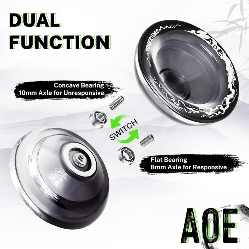 2 Ways to Play: Dual purpose yoyo AOE comes with Concave bearing for replacing unresponsive yoyo, very easy to switch modes