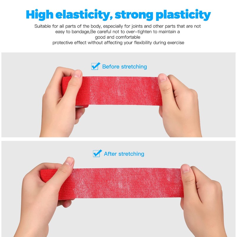 - 【耐水性&通気性】:このテーピングテープは不織布の素材を採用して、伸縮性、 通気性と自己接着性,水や汗によるゆるみなし。また、ドレッシング後、皮膚は空気と十分に接触できるし、汗や水分が蒸発しやすいし、良好な換気および発汗作用があります。自着性テープ は互いに張り付いていますが、皮膚、毛髪には付着しません。