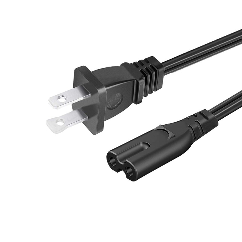 - Figure 8 connector C7 power cable, rated to carry: 10A,7A 125V; 2-prong NEMA 1-15P male plug to female IEC-320 C7 connector 8.2ft long power cord.