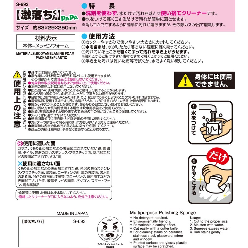 レック 激落ち パパ (メラミンスポンジ) マルチ 8.3×2.9×25cm S-693