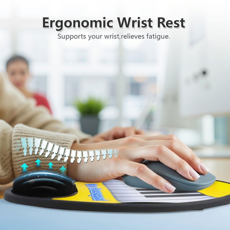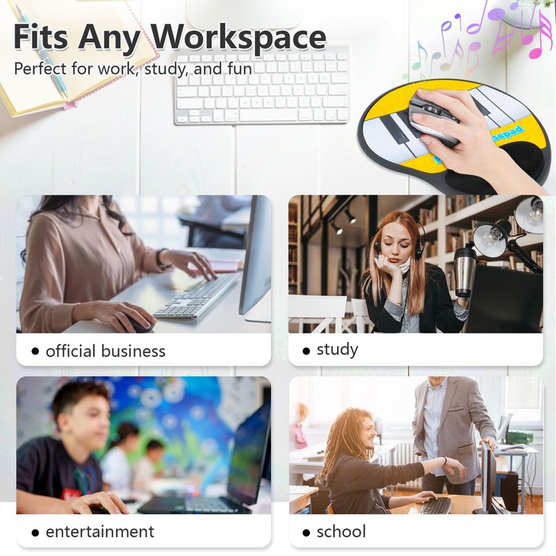 ピアノ型ミュージカルマウスパッド, 演奏可能な8白鍵・5黑鍵, リストレスト付き, 23x26cm, オフィス・デスクワーク用