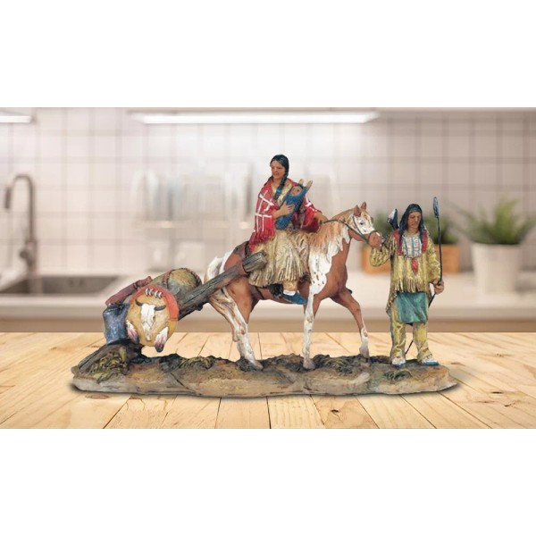 8.5"W Indian Family Statue Native American Decoration Figurine Room Decor