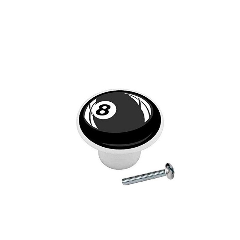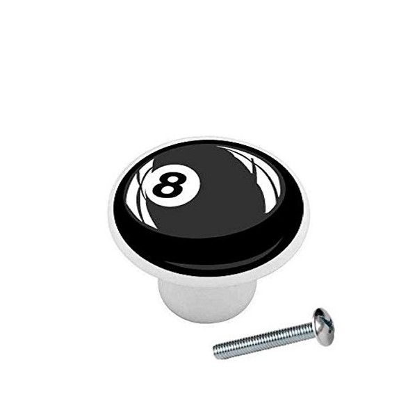 8 Ball Black Billiards Pool - Decorative Ceramic Dresser Drawer Pulls Cabinet Cupboard Knobs