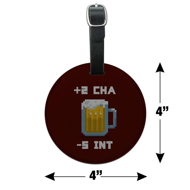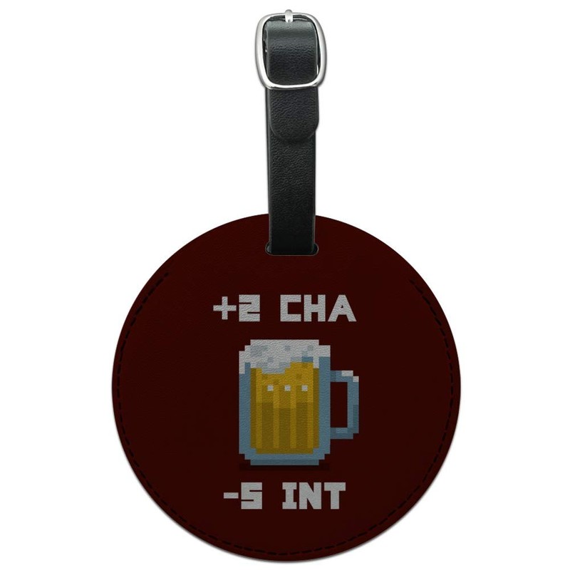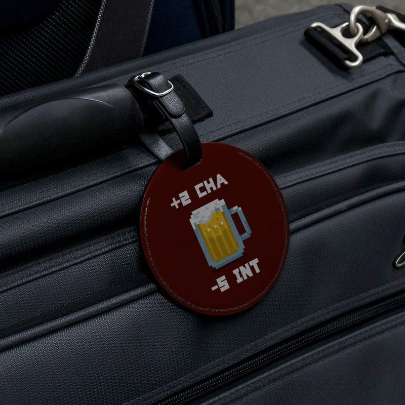 8-Bit Pixel Retro Beer Buff Game Round Leather Luggage Card ID Tag
