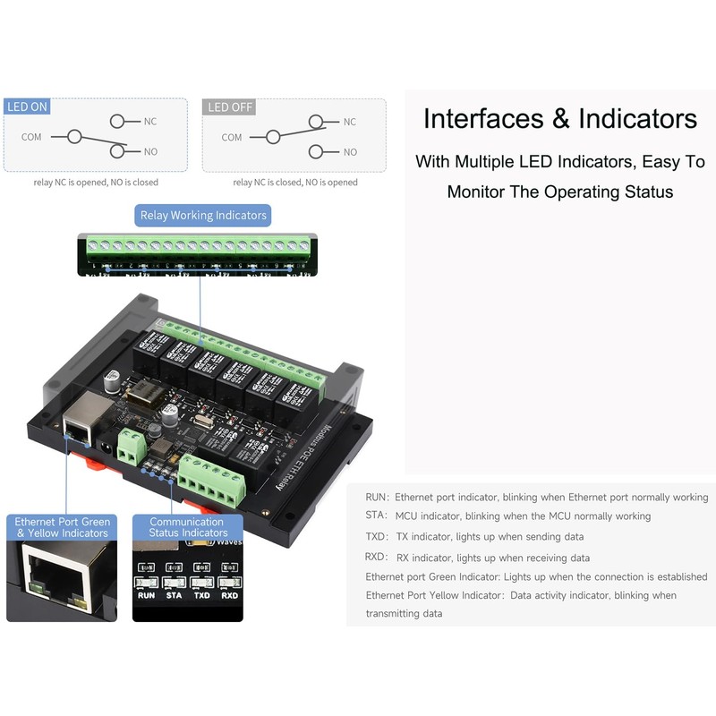 1. Supports sending Modbus RTU/TCP protocol commands via Ethernet port to control relay and various devices