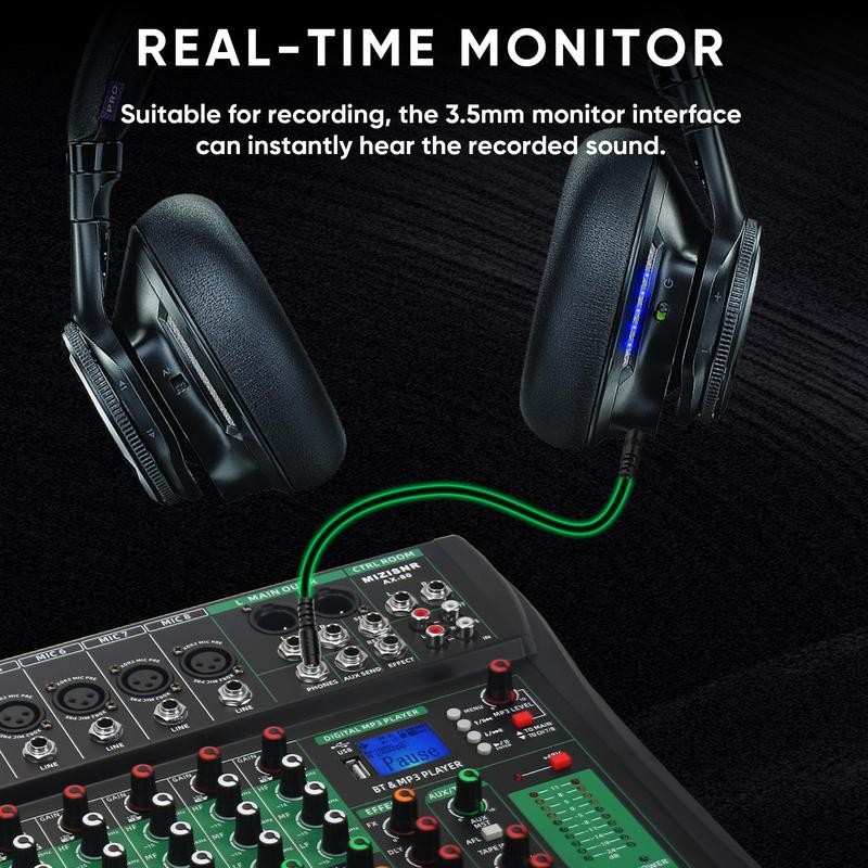 8 Channel Audio Mixer with Reverb, Bluetooth, USB Port, 48V Phantom Power, Professional DJ Mixer for Recording Karaoke Podcasting Microphones Smartphone - model: AX-80PRO-16DSP