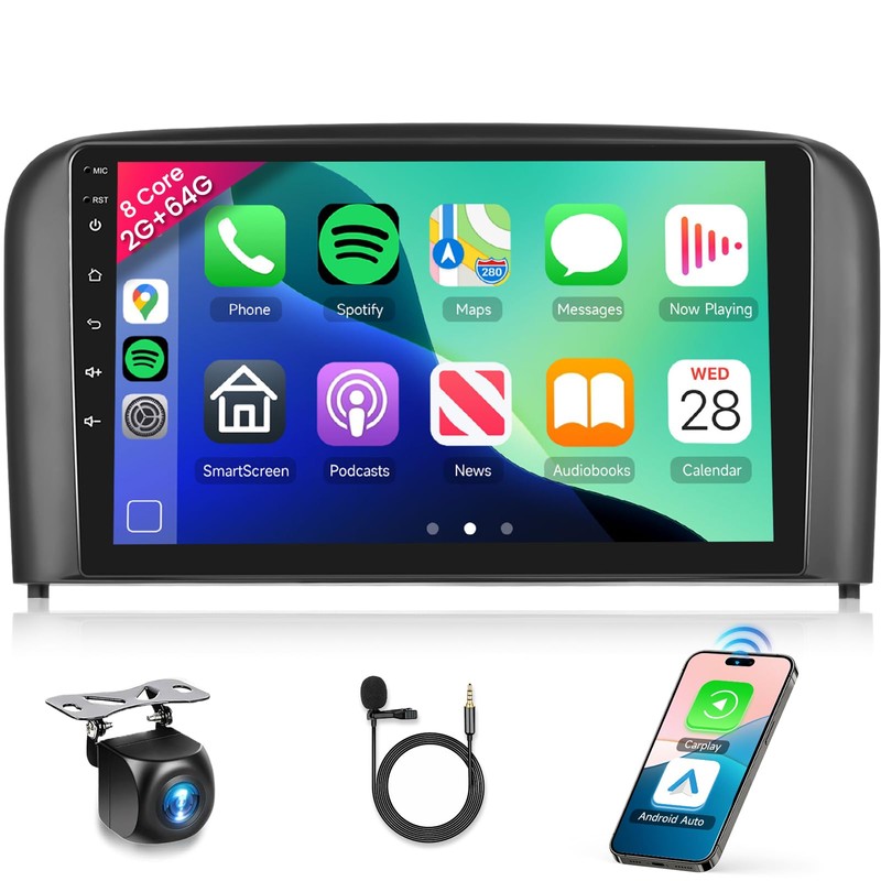 8 CORE 2G+64G Car Radio Stereo for Volvo S80 1999-2006 with Wireless CarPlay Android Auto, 9 Inch IPS Touch Screen Head Unit Android 13 GPS WiFi Bluetooth 32-Band DSP SWC AHD Camera