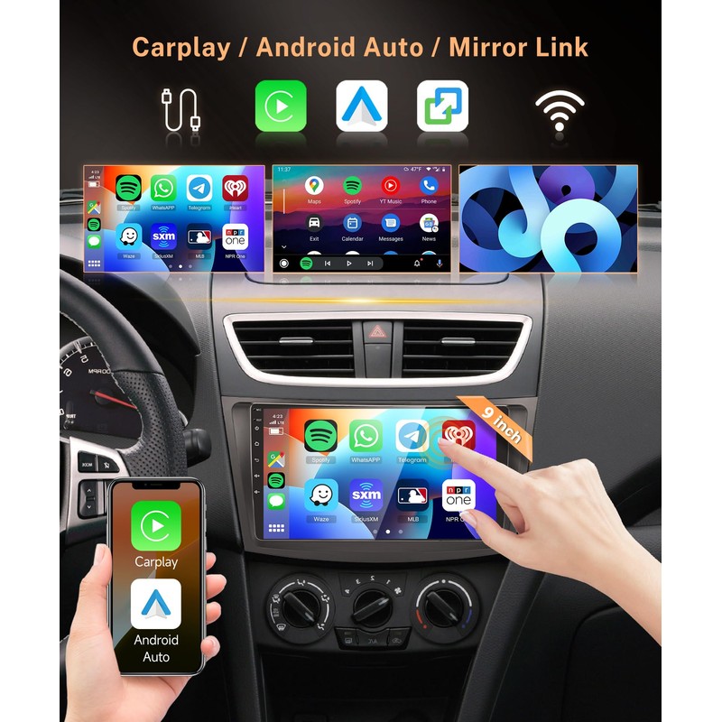 - Wireless Carplay & Wireless Android Auto & Mirror link: for 2016 Suzuki Swift radio support use iPhone or Android phone wirelessly with the device, and control your phone's apps. can make calls, send messages, play music, navigate with just your voice or touch. for 2014 Suzuki Swift Stereo support IOS/Android mirror link, use USB cable or WIFi, mirror your phone's screen on the device's display, You can use your phone's apps, music, videos, etc on the device.