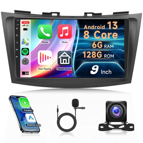 - Compatible Vehicles: Android car stereo carplay for Suzuki Swift 2011-2017. Carplay stereo equipped with android system, 8 Core CPU, Memory:6GB (RAM)+128GB (ROM) with powerful and stable processing and storage, with no lag or delay. 9 inch IPS touch screen: Enjoy a large and clear display with responsive touch control, which allows you to operate the device easily and comfortably. With double USB port.