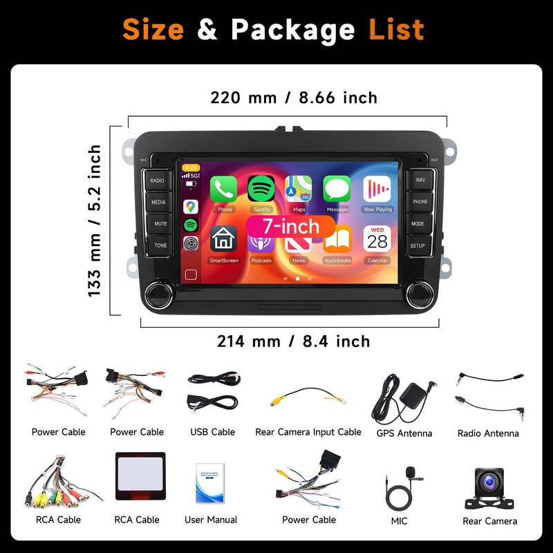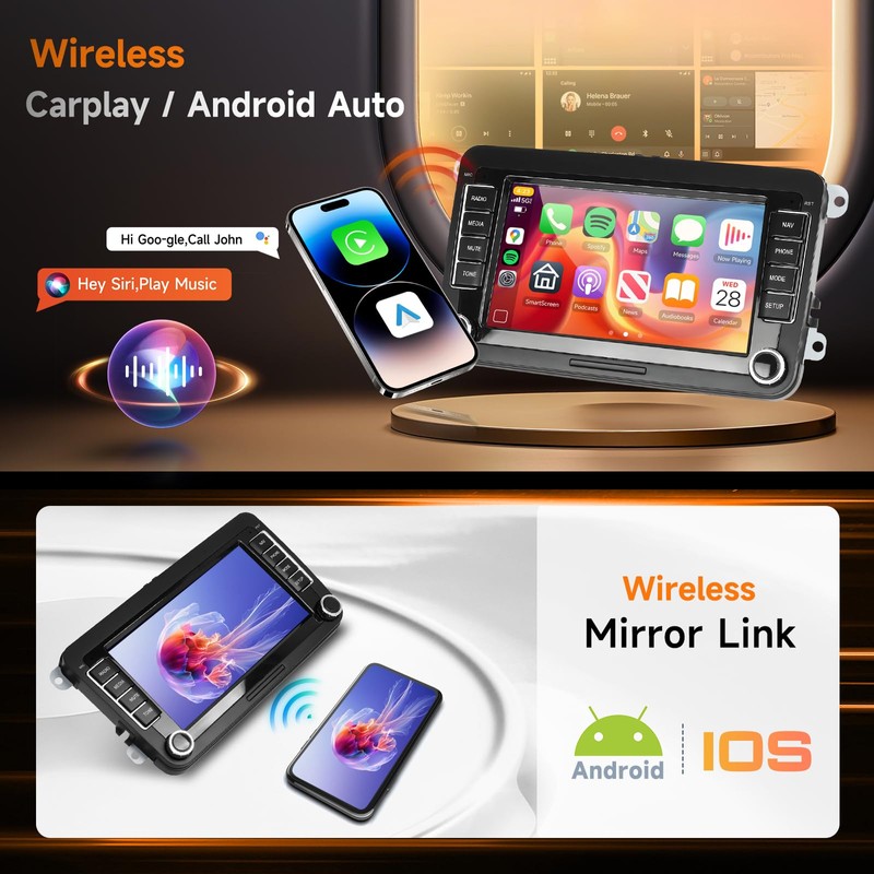 - 【Connectivity with Wireless Carplay Android Auto& Mirror Link】Stay connected with the world with for Volkswagen radio's advanced connectivity options. The Mirror Link feature allows for seamless device integration, while wireless Carplay and wireless Auto ensure that your smartphone's capabilities are always within reach, enhancing your driving experience with convenience and safety