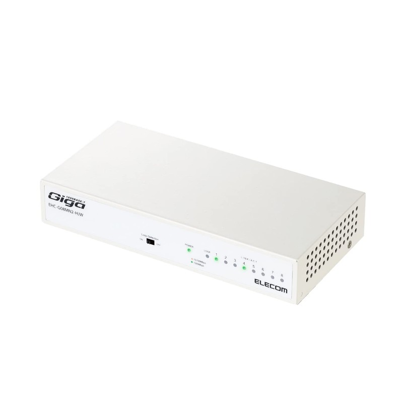 エレコム スイッチングハブ ギガビット 8ポート 金属筐体 マグネット付 電源内蔵 ホワイト EHC-G08MN2-HJW