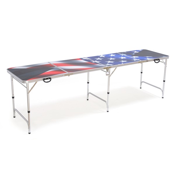 8' Folding Beer Pong Table with Bottle Opener, Ball Rack and 6 Pong Balls - American Flag Design - By Red Cup Pong