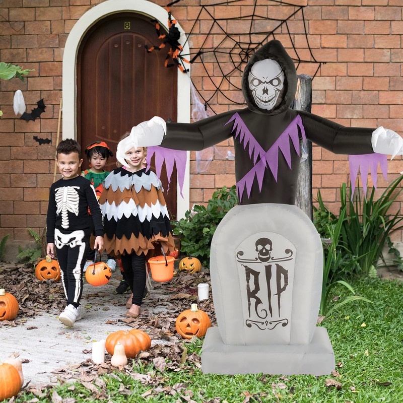 8 FT Long Halloween Inflatables Outdoor Decorations,Blow Up Grim Reaper and Grave Halloween Yard,Built-in LED Lights Décor for Holiday Party (8 FT,Grim Reaper and Grave)