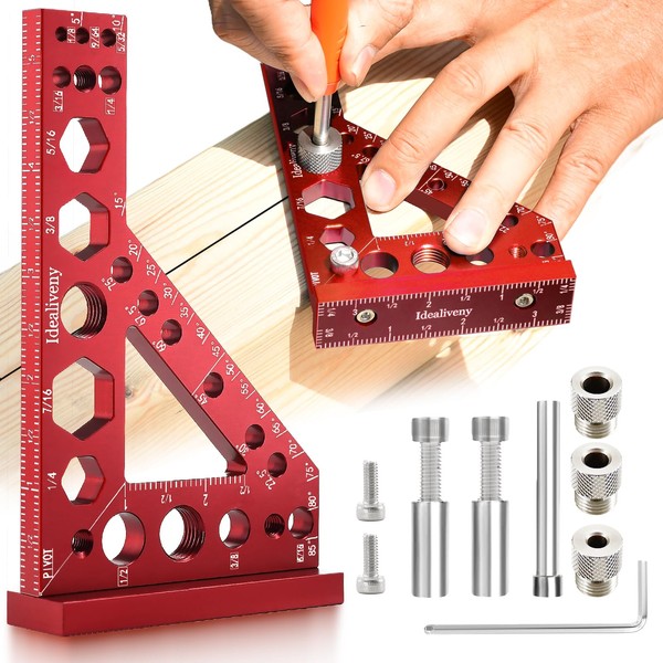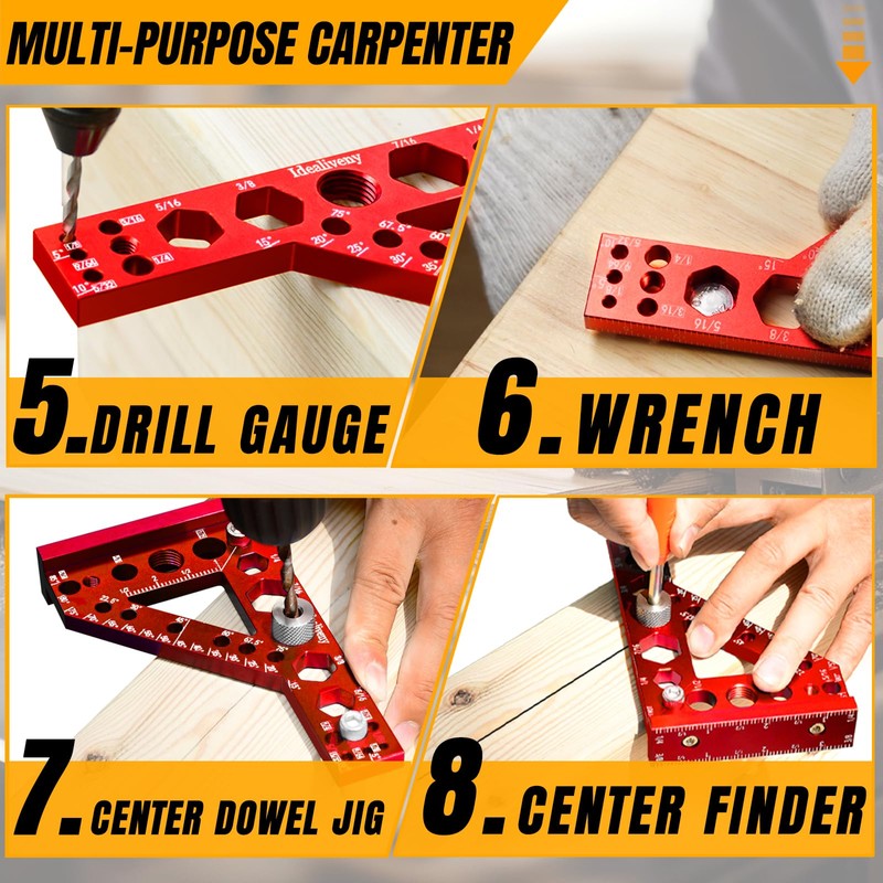 • VERSATILITY IN CRAFTSMANSHIP – Quickly and accurately measure, trace, take angles and mark center using only one woodworking square! Idealiveny multi-function carpentry squares are including a square, two protractors, three marking gauges, two rulers, a drill gauge, a wrench and two center finders. It is perfect for professionals and DIY enthusiasts.