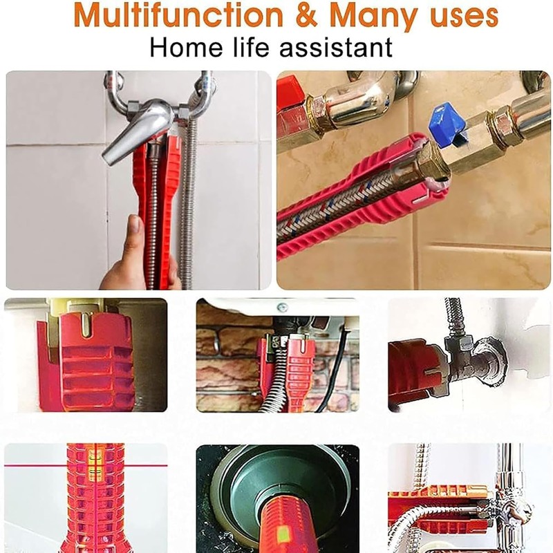 - Multi-Purpose Plumbing Tool: This 8-in-1 sink wrench is designed for supply nuts, shut-off valves, strainer baskets, supply line nuts, and faucet nuts. Perfect for kitchen, bathroom, and toilet installations, it simplifies plumbing tasks in tight spaces.
