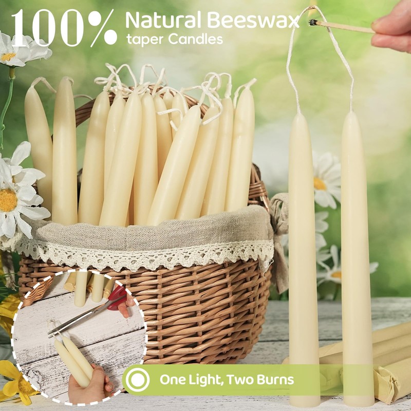- Sustainable Beeswax Candles Choice:Beeswax taper candles are made of premium natural beeswax.when burning,they release natural honey scent,negative ions,which can neutralize dust,allergens in the air,clean the air,good for people with allergies or asthma,helps people stabilize their emotions,concentrate and restore their physical strength.Whether it is for yoga,meditation,reading or a quiet night,these beeswax candles can add a sense of tranquility and warmth to your space