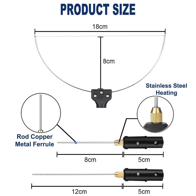 • 【8 in1 Foam Cutter Kit】The Foam Cutting Kit includes two straight heating heads and one arc heating head for versatile cutting, with quick-swap design saving time and boosting efficiency. With a dedicated holder safely holds hot tools when not in use. Also includes: Foam cutter tool, Marker pen, Power adapter, User manual.