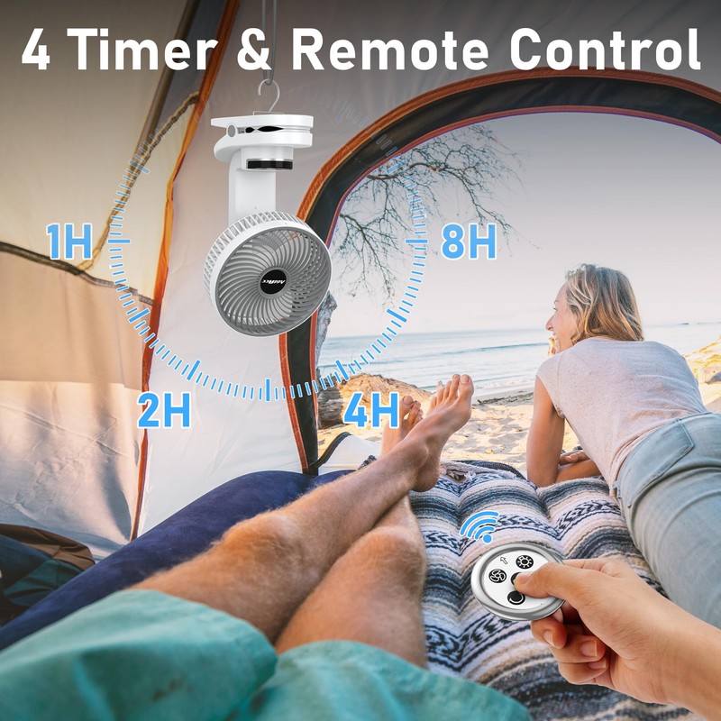 - Whisper-Quiet & Timer: Equipped with latest motor technology, this battery operated fan delivers smooth, ultra-quiet airflow (min:<20dB), perfect for sleep or relax in small spaces. With convenient timer settings (1/2/4/8 hours), you can control its runtime and save energy effortlessly.