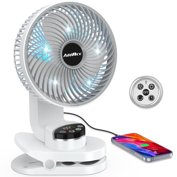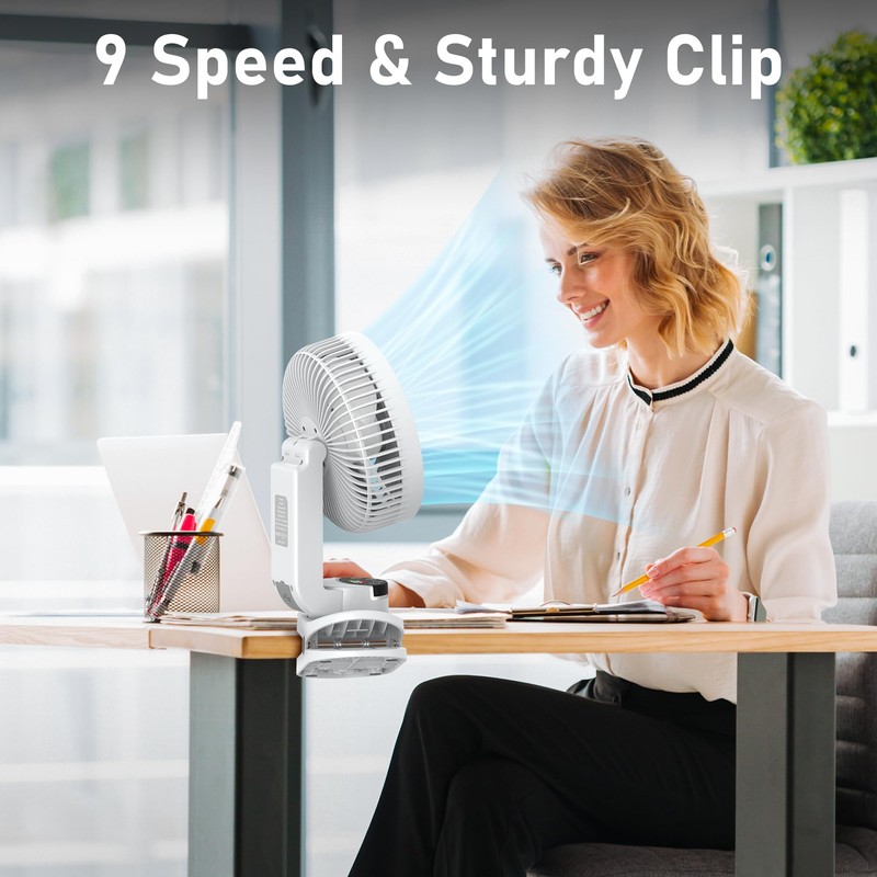 - 9 Adjustable Speeds: AddAcc rechargeable clip-on fan offers 9 powerful airflow settings to suit various occasion. Need a natural breeze? Choose the 9 gear (speed fluctuates up and down for a lifelike feel). The highest setting (Speed 8) reaches up to 14.76 ft/s to cool you down in seconds!