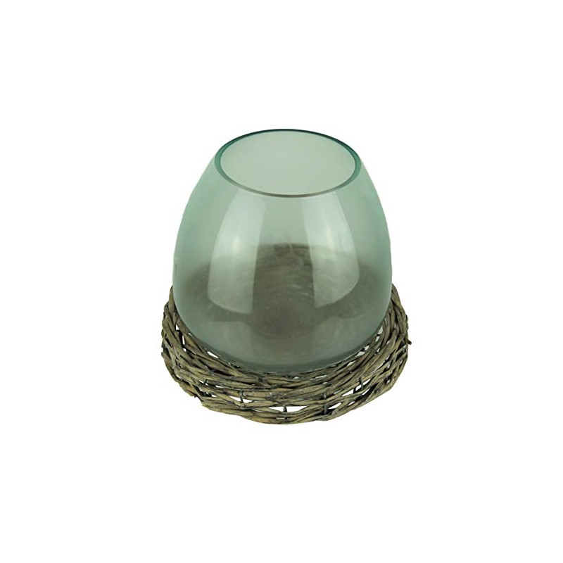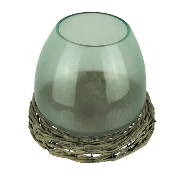 8 Inch Diameter Glass Terrarium Vase with Wicker Base