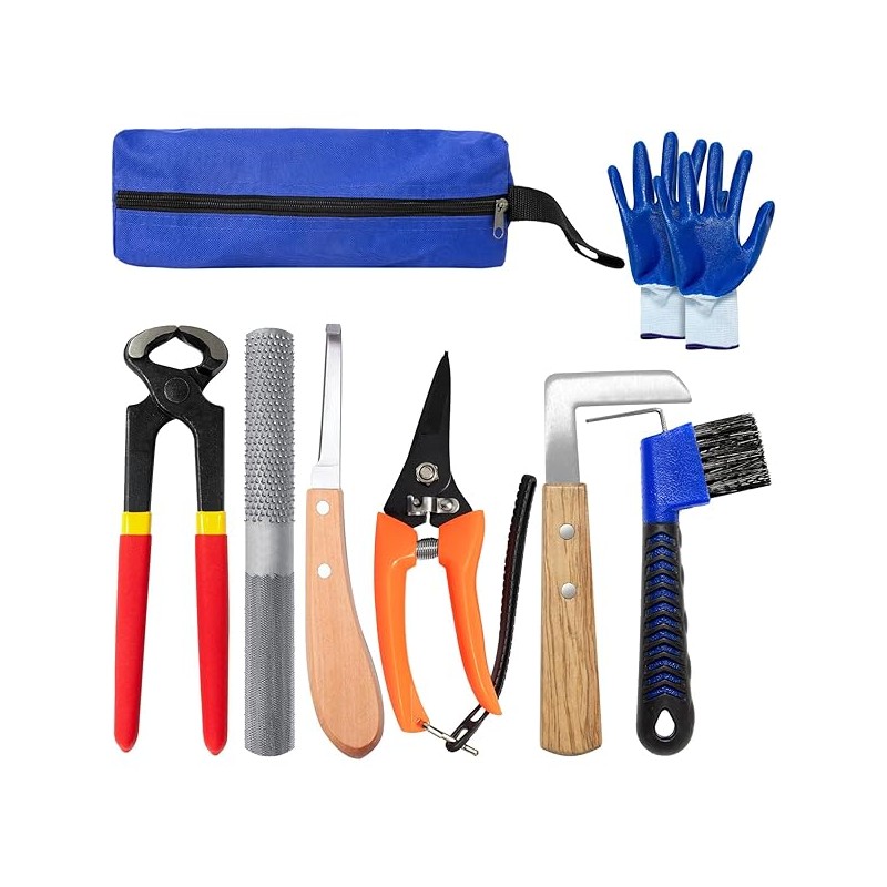 8 inch Farrier Tools Kit (8 Piece) Horse Goat Hoof Trimmers Carbon Steel Nippers Shears Nail Clipper, Mini Rasp, Hoof Trimming Cutter Knife, File for Pig Sheep Donkey Equine Supplies with Storage Bag