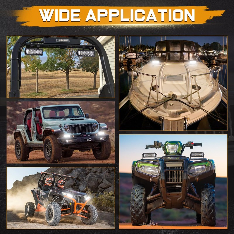 • UPGRADED PERFORMANCE -- IP68 Waterproof Rating, our durable LED driving light has perfect waterproof, rust-proof, dust-proof, shock-proof performance allowing it used in various hard environments. Equipped with quick-cooling alloy heat sinks, the LED light bar's lifespan can be effectively extended to an impressive 50,000 hours!