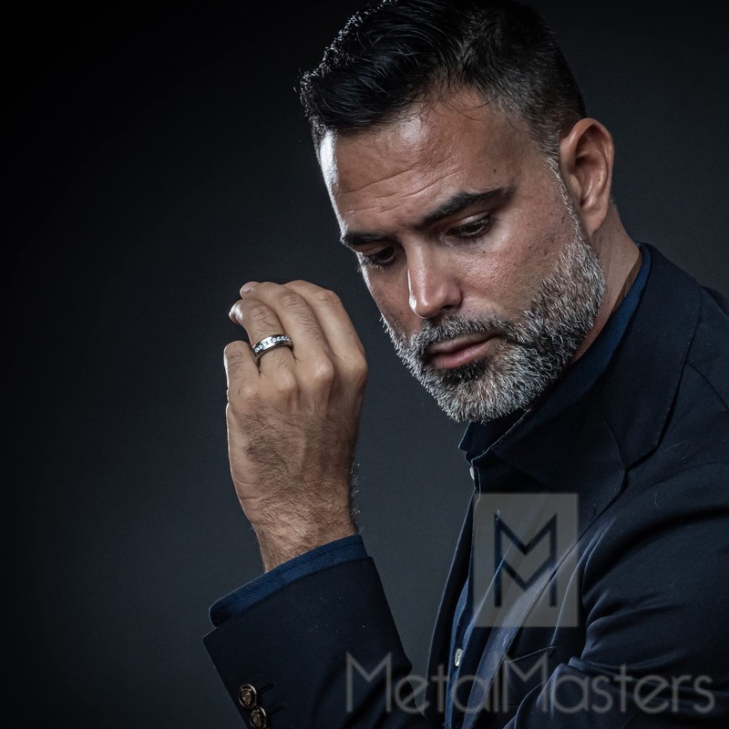 - Featured ring is exquisitely crafted out of our finest genuine titanium metal. A light satin brushing contrast the center of this 8mm ring with high polish beveled edges.