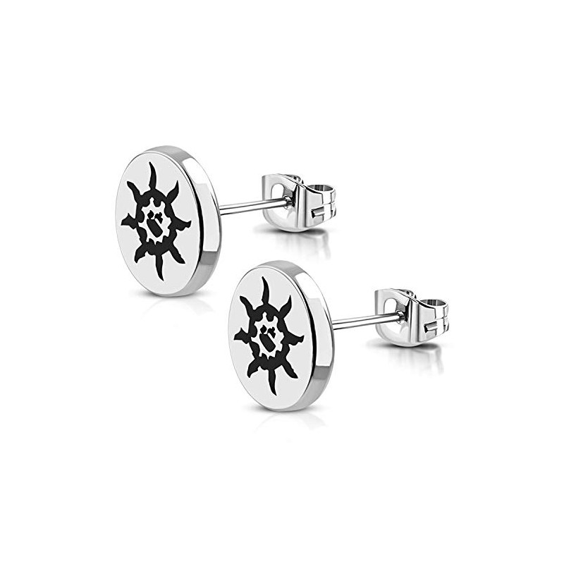 8 MM Stainless Steel Tribal Sun God Rune Symbol Circle Disc Button Stud Post ...