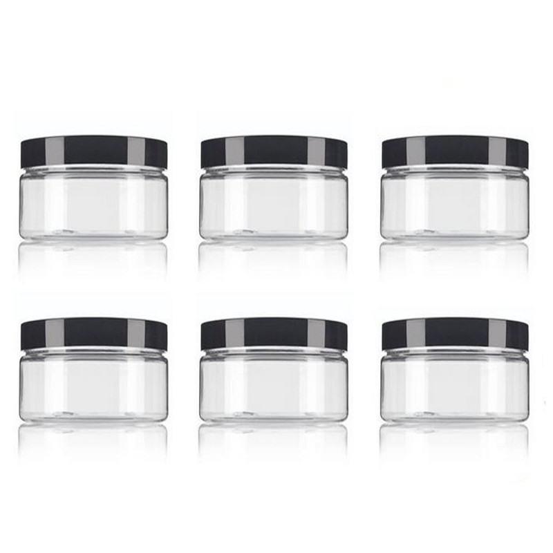 8 Oz / 250ml PET Plastic Refillable Jars Empty Cosmetic Containers Cases with Black Lid Cream Lotion Box Ointments Bottle Food Bottle Makeup Pot Jar for Lip Balm Make Up Eye Shadow Powder Pack of 6