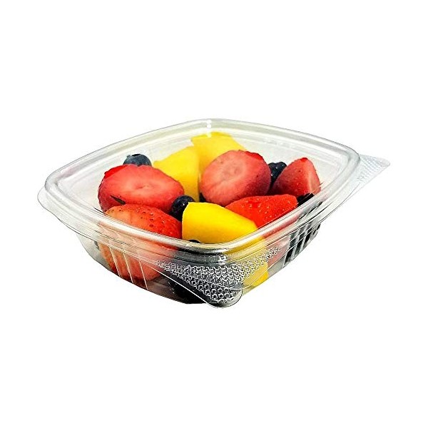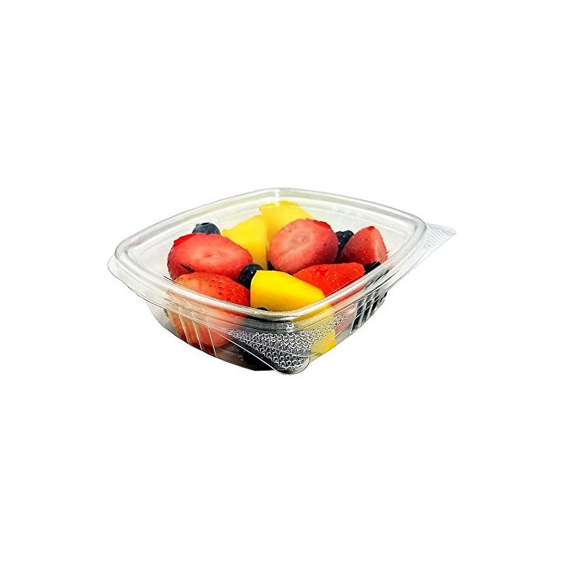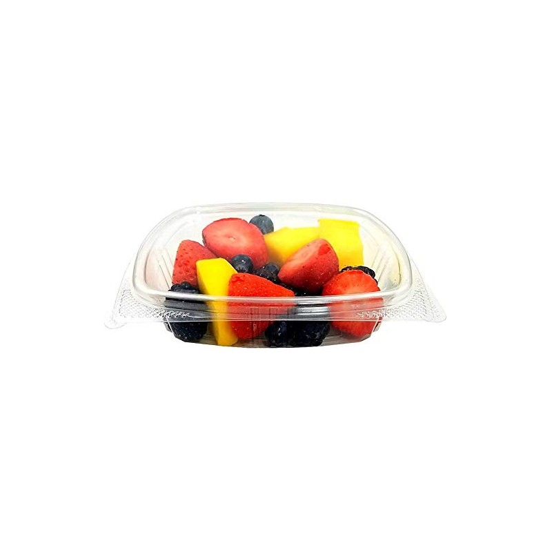 - Ideal for supermarkets, delis, and C-stores. Integrated hinged lid eliminate an additional sku and free up space, allowing for product stacking. Textured tabs allow for slip resistant grip and easy opening. Smooth labeling window allows for easy label placement. Crystal clear RPET plastic allows for visible and upscal food presentation