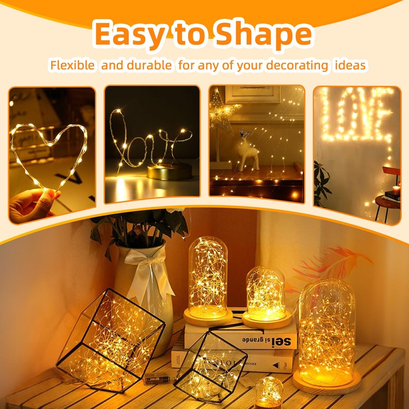 - 【Easy to Shape】2M flexible copper wire bottle lights are easy to shape and can be wound and unwound at will. Very suitable for DIY decoration, can be shaped into the cute and beautiful shape you need, creating a romantic atmosphere