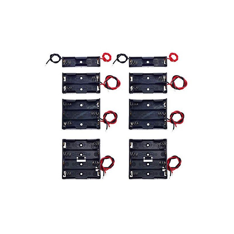 8 Pack AA Battery Holder Bundle with Wire 1 AA Battery Holder 1.5V, 2 Pcs, 2 AA Battery Holder 3V, 2 Pcs, 3 AA Battery Holder 4.5V, 2 Pcs, 4 AA Battery Holder 6V, 2 Pcs by QTEATAK