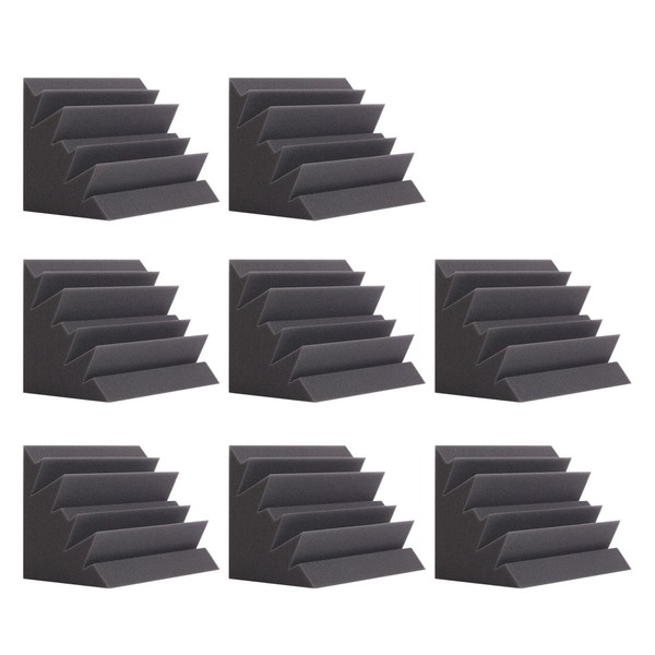 - Size and Color- Package includes 8 pack of 8’’x8’’x12’’ black bass traps corner foam.Generally speaking, Mounting the bass traps from the bottom to ceiling of the corner brings the best acoustic performance. Or mount 3 pack bass traps in one corner of ceiling.